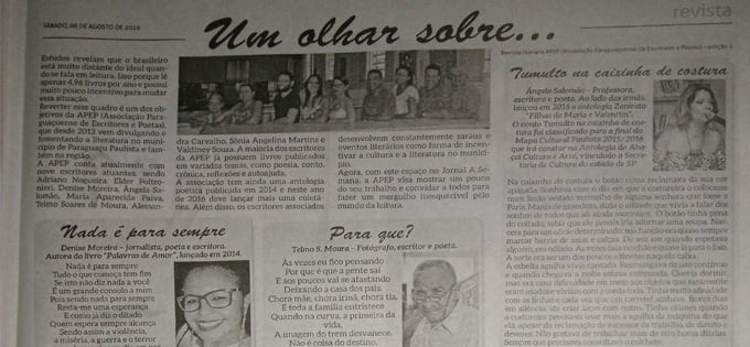 Não deixe de prestigiar esta importante mídia local, como também não deixe de acompanhar o trabalho realizado pela APEP (Associação Paraguaçuense de Escritores e Poetas). Este tipo de ação fortalece a literatura local, além de servir de exemplo para outras localidades.